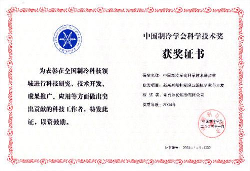 2005年1月,冰輪“新系列螺桿制冷壓縮機(jī)研究與開發(fā)”榮獲中國制冷學(xué)會(huì)科技進(jìn)步一等獎(jiǎng)。