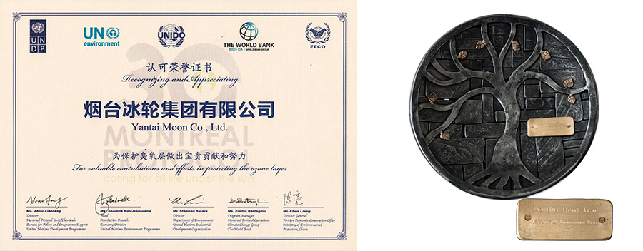 冰輪環(huán)境作為我國唯一企業(yè)榮獲聯(lián)合國“保護(hù)臭氧層示范項(xiàng)目獎(jiǎng)”。