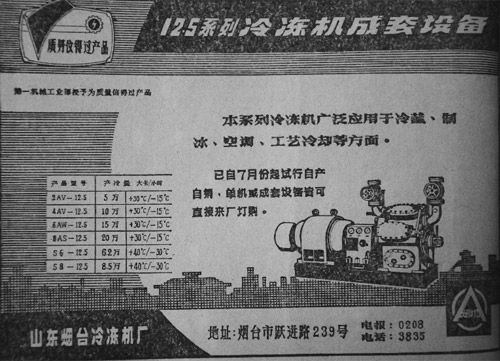 3月,公司更名為“煙臺(tái)冷凍機(jī)總廠”。