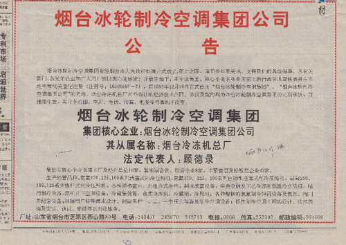 11月,煙臺(tái)冷凍機(jī)總廠股份制改革,公開向社會(huì)自然人發(fā)行股票。